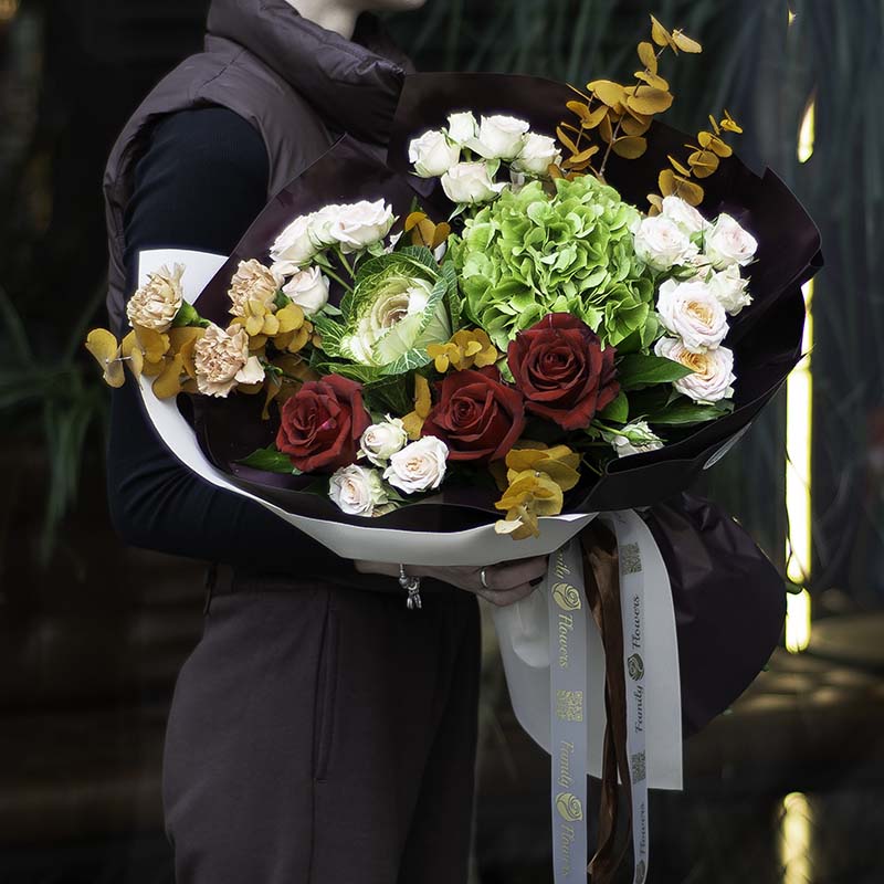 When you need something really special, unique, with a highlight and, most importantly, floral, then you have made the right choice! Our florists perform their tasks very carefully and creatively, taking into account all the details. Our exclusive bouquets are created with great enthusiasm and inspiration, because the creation of a bouquet is similar to creation of a picturesque masterpiece, step by step, unique and peculiar in its own way.