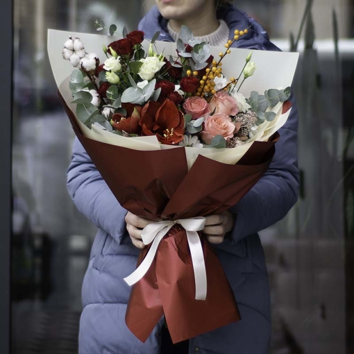 Сomposition: dahlias, single-headed rose, rubels, exotic and field applications