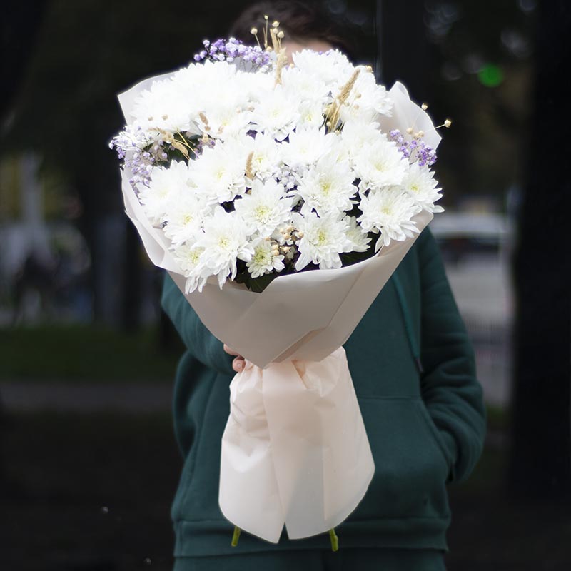 Сomposition: chrysanthemum, gypsophila, dried flowers