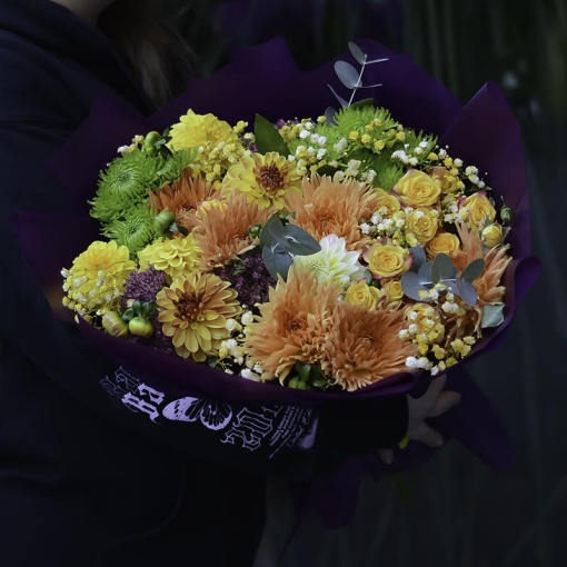 Description: this bouquet in its combination, style, appearance resembles a mosaic – a colorful pattern of decorative art …