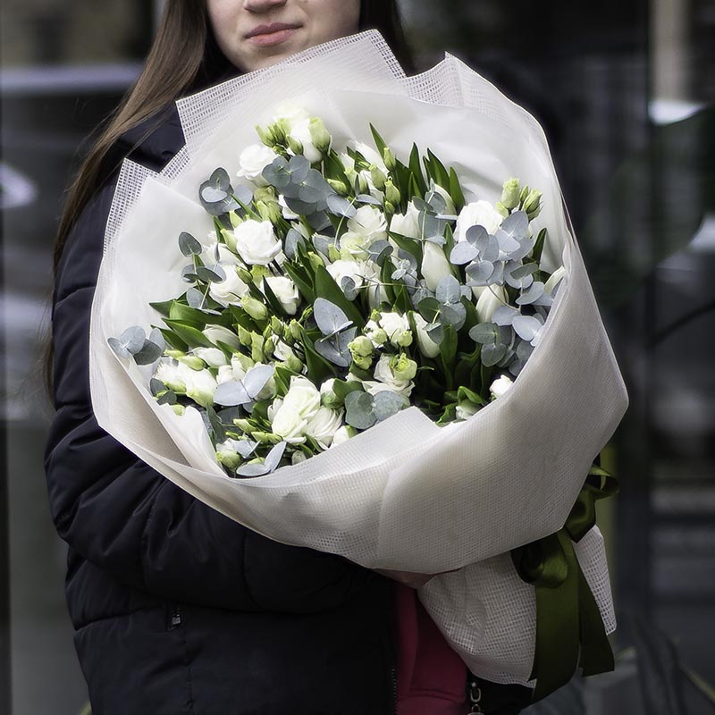 Product Composition: tulips, eustoma, eucalyptus.