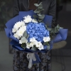 Сomposition: hydrangea, freesia, chrysanthemum, eucalyptus and other exotics
