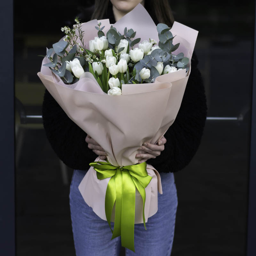 Ingredients: eustoma, tulip, freesia, rubella, aspidistra.