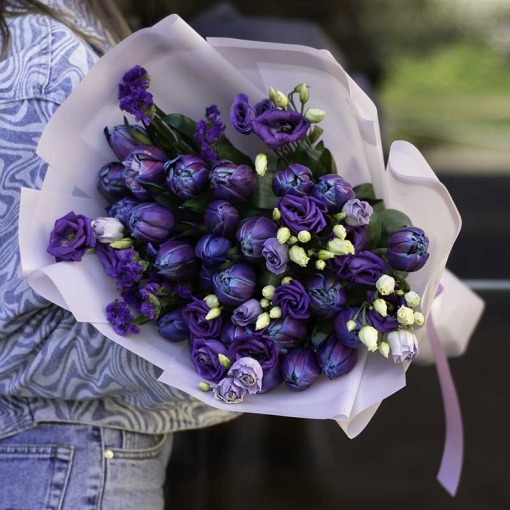 Product Composition: tulips, eustoma, kermek