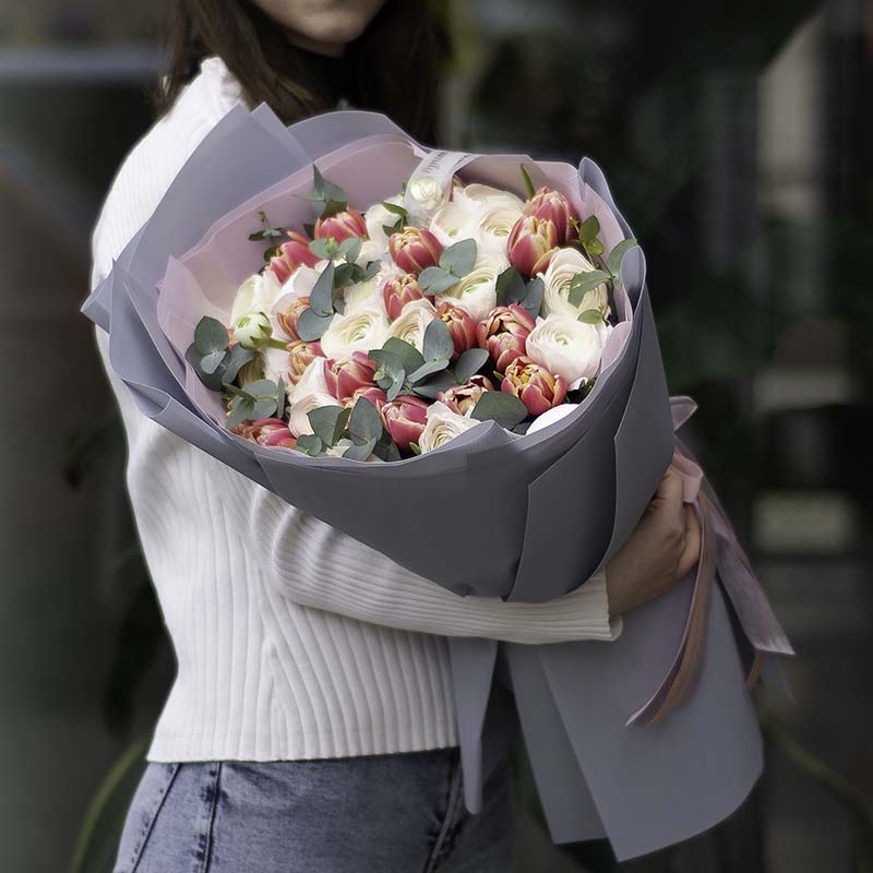 Ingredients: ranunculus, peony tulips, eucalyptus.