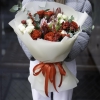 Description: harmonious pronounced combination of flowers, chaotic forms and exotic accessories make this bouquet extremely interesting and elegant)