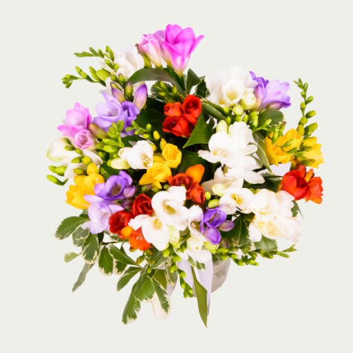 Product Description: This colorful bouquet of freesias is like a small reflection of a real rainbow.