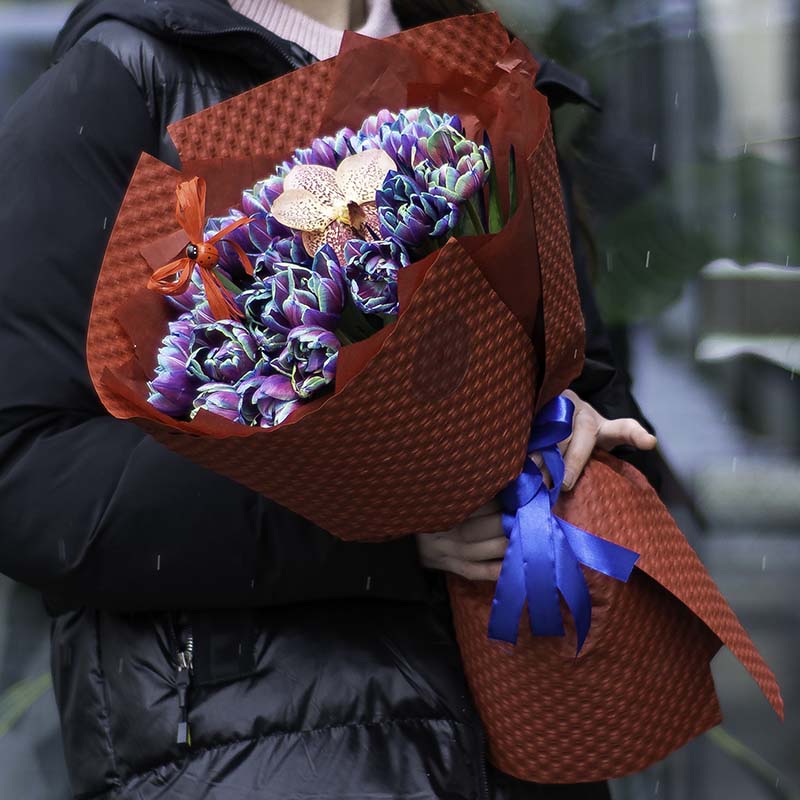 Product Description: this amazing bouquet of cosmic tulips will decorate your romantic evening with your beloved.