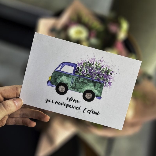 A greeting card can become a great complement to a bouquet or a flower arrangement.