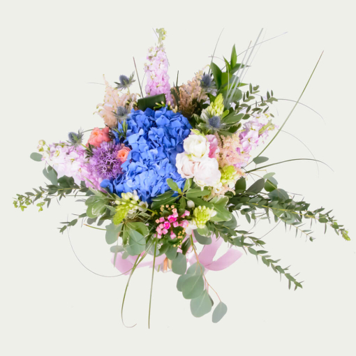 Product Description: This floral arrangement combines the charm of the field and special elegance of various forms.
