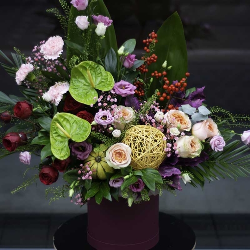 Product Composition: orchid, branched roses, chrysanthemum Santini, greenery.