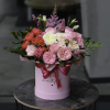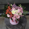 Сomposition: peony rose, eustoma, eucalyptus