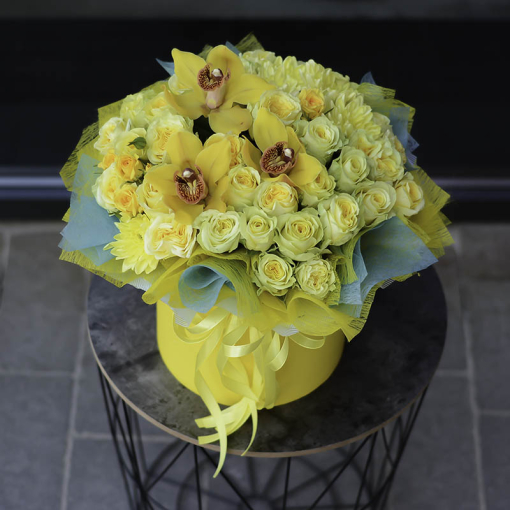 Description: “emphasis on yellow”, that’s how you can accurately describe this flower arrangement))