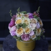 Сomposition: peony rose (short), lion’s mouth, ornamental foliage