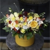 Сomposition: alpine needles (live), cones, dried flowers and decorative ornaments.