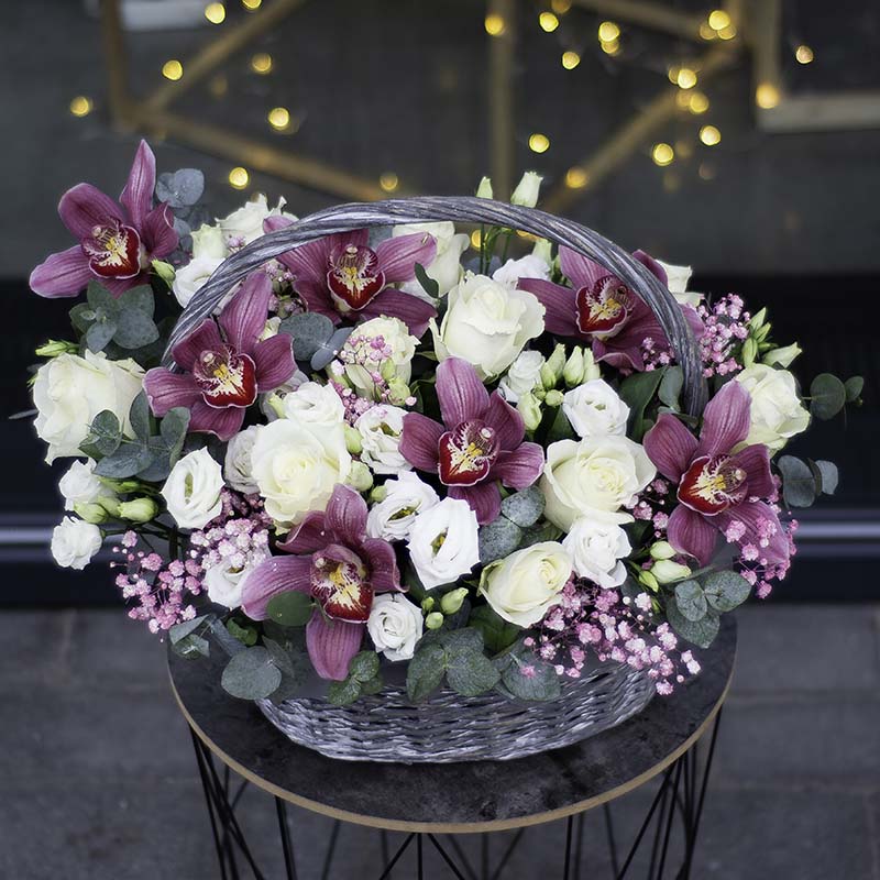 Product Composition: eustoma, single-bud rose, gypsophila, orchid.