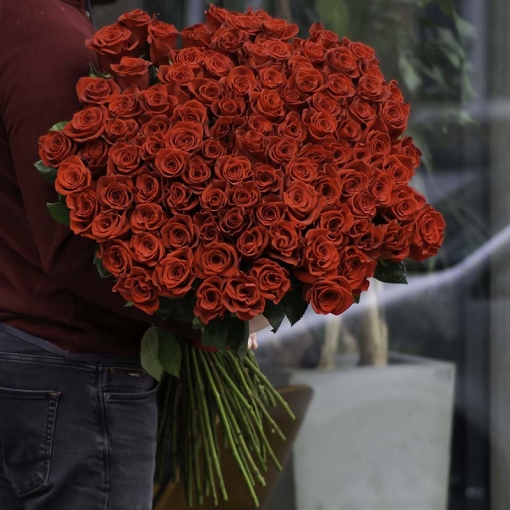 Product Description: You can pleasantly surprise and amuse a woman by giving her a huge bouquet of dark-red roses.