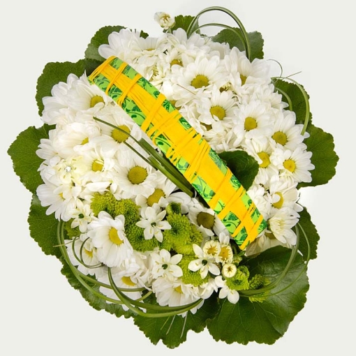Склад: орнітогалум, хризантема біла, хризантема “сантіні” та зелень.